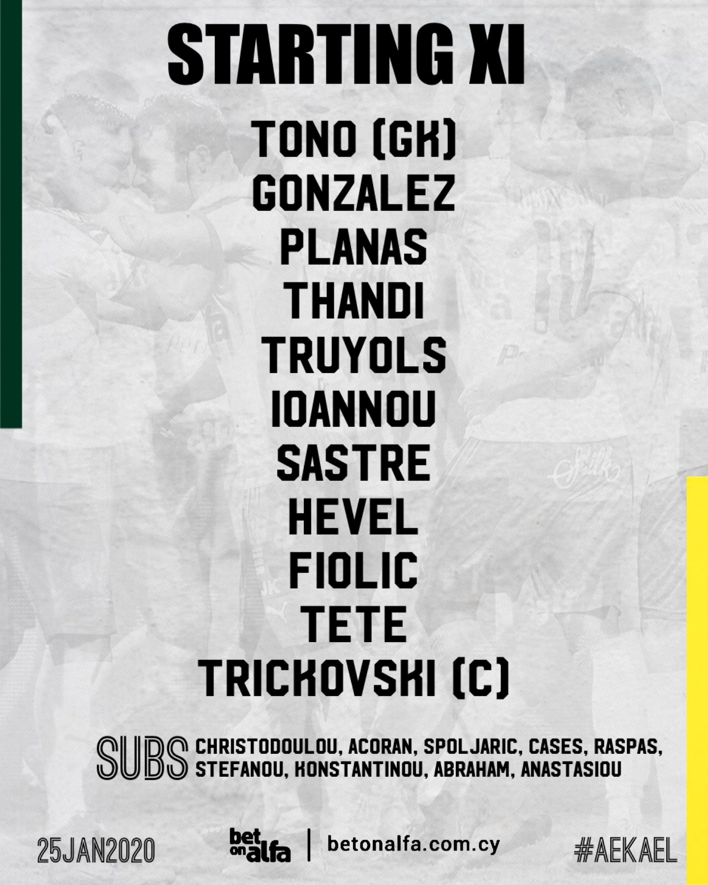 Δείτε τις επιλογές του Ηλία Χαραλάμπους για το ντέρμπι με την ΑΕΛ για την 17η αγωνιστική του πρωταθλήματος.