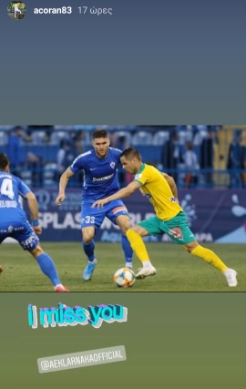 Και μέσα σε όλα αυτά, ο Ισπανός άσος της ΑΕΚ έδειξε την αγάπη του προς την ομάδα και το ποδόσφαιρο καθώς ανάρτησε την πιο κάτω φωτογραφία και έγραψε στα Αγγλικά τη λέξη ''σε έχω πεθυμήσει'', εννοώντας προφανώς και την αγωνιστική δράση.