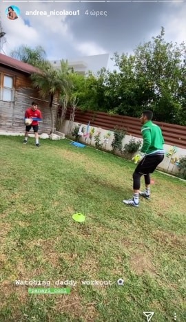 Ειδικές ασκήσεις για τερματοφύλακες ακολουθεί ο πορτιέρο της Ομόνοιας, ενώ πιο κάτω μπορείτε να δείτε την ανάρτηση που έκανε η σύντροφος του, Άντρεα Νικολάου.