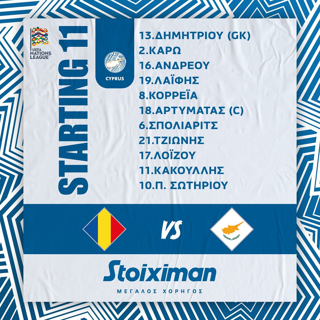 Λαΐφης αντί Παναγιώτου, Κορέια αντί Ιωάννου, Σπόλιαριτς αντί Κάστανου, Τζιωνής αντί Χαραλάμπους και Σωτηρίου αντί Πίττα οι πέντε αλλαγές στο αρχικό σχήμα σε σύγκριση με τον εντός έδρας αγώνα κόντρα στη Λιθουανία.