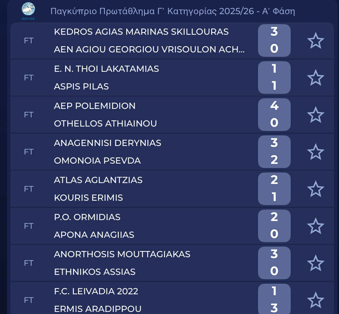Ολοκληρώθηκε η 10η αγωνιστικής στο πρωτάθλημα της Γ' κατηγορίας με την πρωπόρο ΑΕΠ να έχει εύκολο έργο απέναντι στον Οθέλλο, κερδίζοντας τον με 4-0. Στο -1 από την κορυφή η Αναγέννηση Δερύνειας μετά τη νίκη της εντός έδρας επί της Ομόνοιας Ψευδάς. Στην 3η θέση ο Ερμής μετά το διπλό επί της FC Λειβάδια.