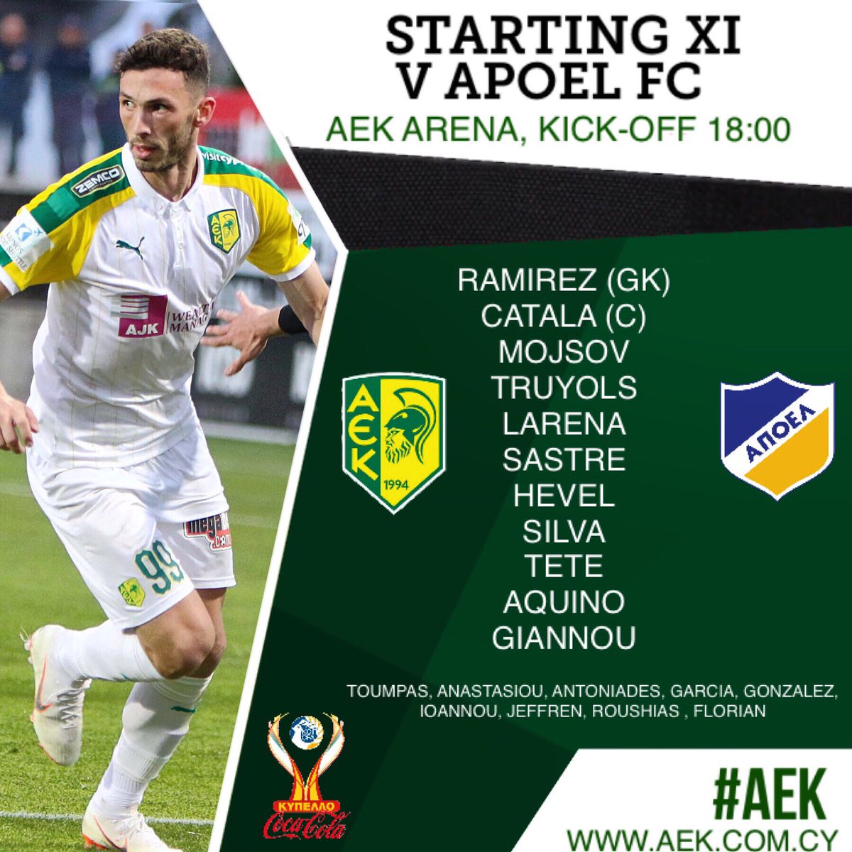 Τόνιο, Καταλά, Μόισοφ, Τρουγιόλς, Σίλβα, Χέφελ, Λαρένα, Σάστρε, Τέτε, Ακίνο, Γιάννου.