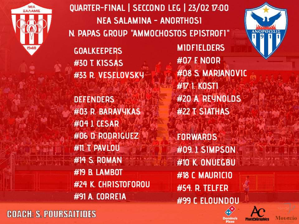Με απογευματινή προπόνηση ολοκλήρωσε την προετοιμασία της η Νέα Σαλαμίνα ενόψει του αυριανού επαναληπτικού αγώνα με την Ανόρθωση.